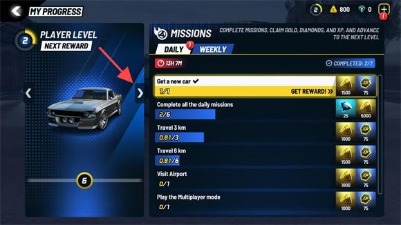 3、升級解鎖的車輛需要在每日任務的旁邊點擊箭頭來查看,每級可以解鎖的車輛都是不同的。