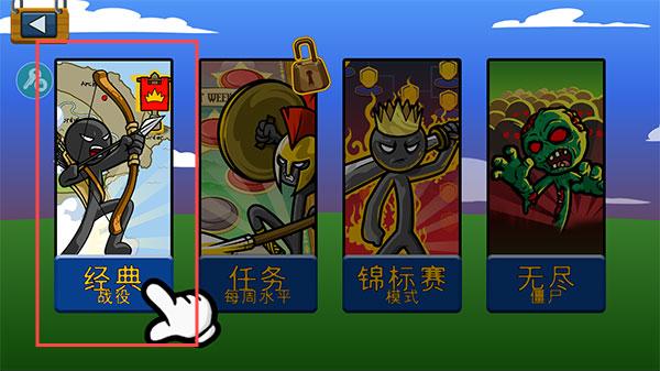 1、下載進入火柴人戰爭遺產召喚,點擊開始游戲,選擇游戲模式,進入之后,選擇你想要的難度模式。