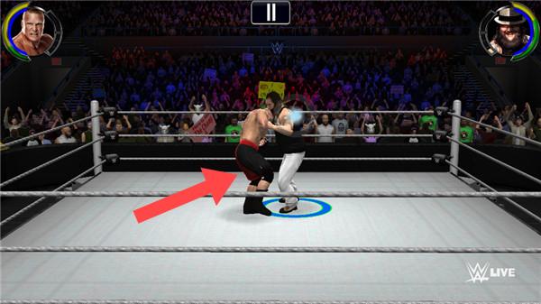 3、比賽開始后,玩家只需在屏幕中控制角色進行攻擊、移動等等即可進行摔跤對戰。