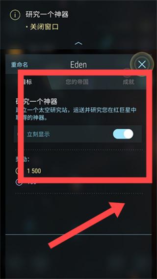 2、任務成就探索:點擊左上角等級圖標進入任務頁面,完成任務、查看帝國信息與成就,獲取資源提升實力。