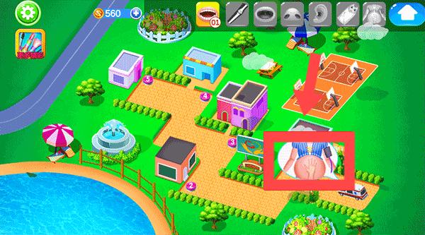 1、下載好游戲后點擊進入趣味模擬醫院游戲,找到框框里的按鈕的位置點擊并進入其中。