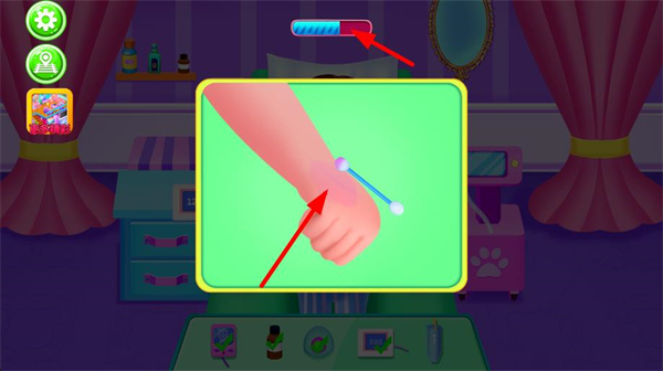 3、處理口腔病癥:模擬消除口腔紅腫,引導孩子關注口腔健康問題。
