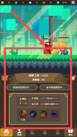 3、游戲過程中,你的角色會自動進行戰斗,作為玩家你的主要任務是精心培育角色,幫助其不斷成長。
