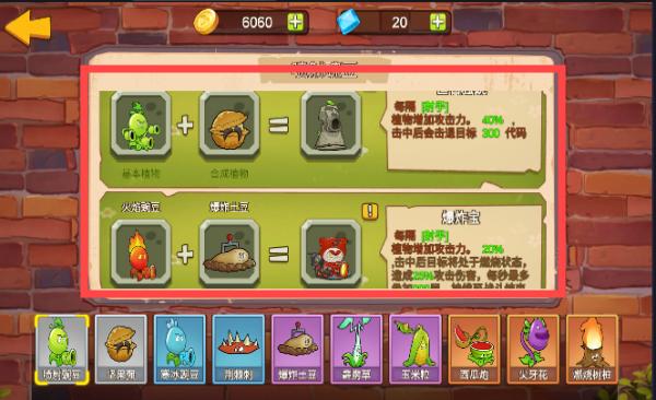 2、挑選植物組合:從眾多植物中選擇搭配,通過合并創造新植物,增強玩家防御實力。