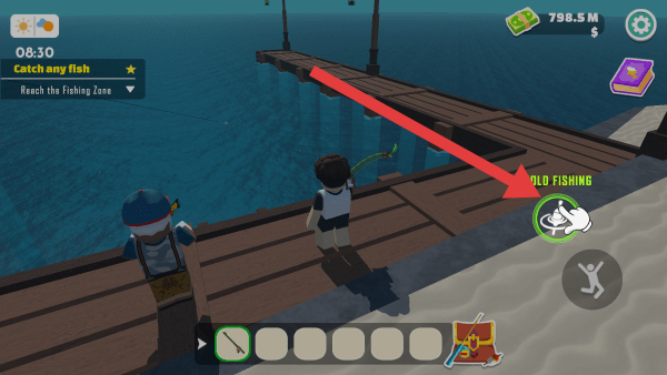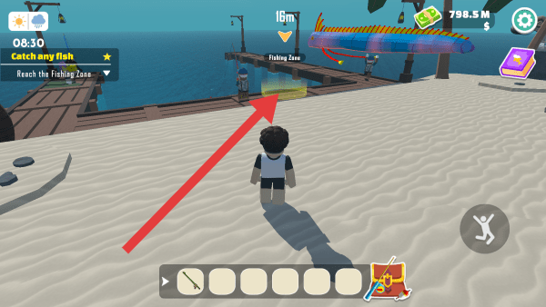 1、下載進入到手游中,玩家要找到老爺爺接取任務,然后來到碼頭位置就可以開始釣魚。