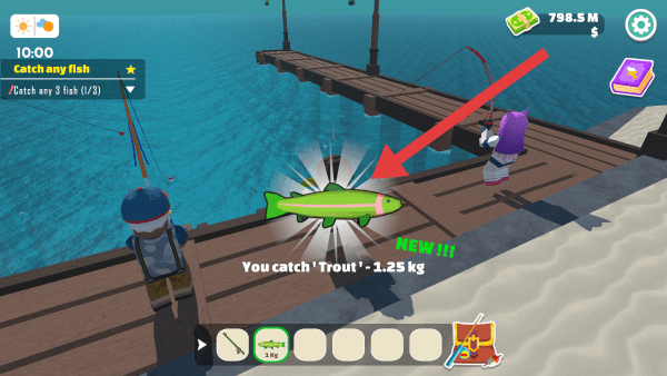 1、接取任務啟程:下載進入手游后,向老爺爺領取任務,明確目標后前往碼頭等釣魚地點,玩家可以開啟釣魚之旅。