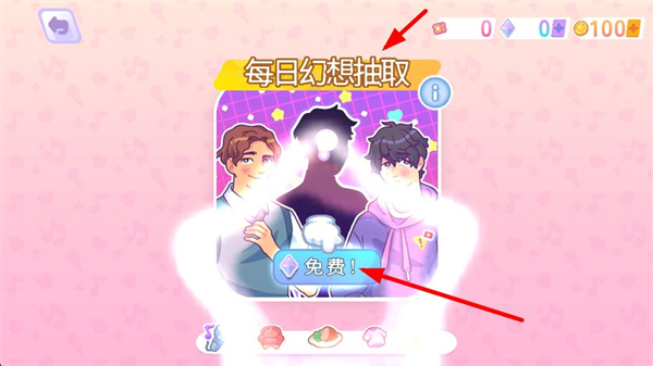 2、參與每日幻想抽取,點擊免費按鈕進行抽取,可獲得對應的資源或角色,豐富偶像團隊的配置。