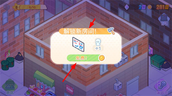 3、解鎖新房間時點擊免費按鈕,即可開啟新的房間區域,拓展偶像團隊的活動空間,完善場地配置。