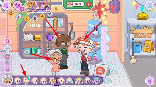 2、場景探索操作:點擊不同場景圖標進入對應區域,與場景內人物互動觸發表情動作,體驗多樣化生活場景。