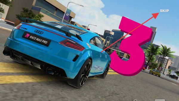 2、游戲開始前會有一段動畫,展示賽車的全貌,點擊右上角可跳過。