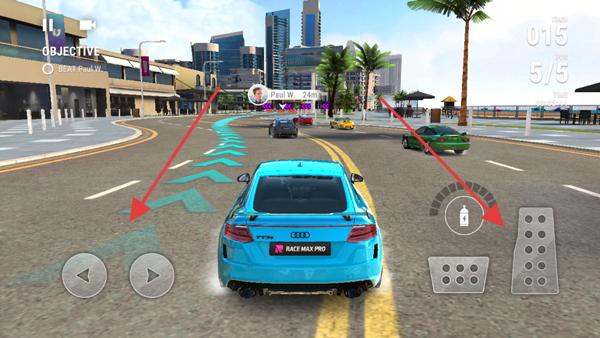 3、然后進入新手教程,玩家需駕駛賽車進行競速,屏幕左邊控制左右,右邊則為油門、剎車、氮氣等鍵位。
