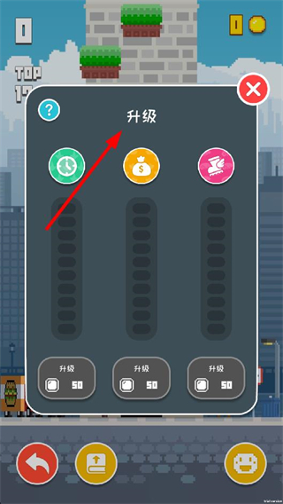 4、進入升級界面,消耗資源升級屬性,提升角色的跳躍能力,增強冒險過程的續航與效率,繼續推進冒險,挑戰更高高度。