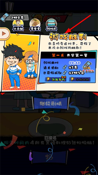 1、關卡目標挑戰:選擇關卡并查看通關條件,通過完成上課、比賽等任務目標,解鎖新劇情與獎勵。