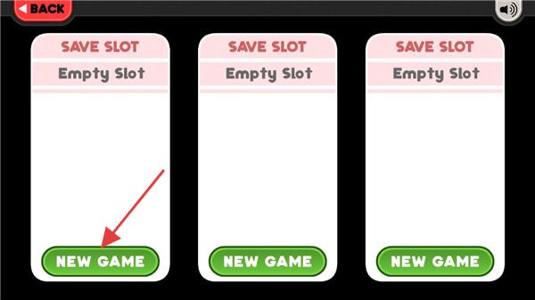1、進入游戲后會看到保存進度界面,這里有三個SAVE SLOT保存槽,當前均顯示為Empty Slot空槽,你可以任選一個保存槽,點擊下方的綠色NEW GAME按鈕來開啟新游戲。