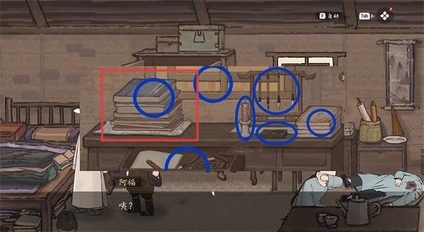 2、接著離開屋子,觸發相應劇情,并會有阿福加入隊伍,之后需要查看書桌。