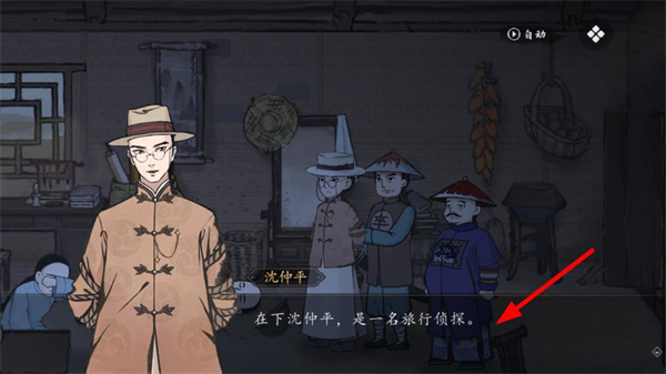 1、了解角色沈仲平是旅行偵探,查看當前場景里的互動元素,準備開啟后續的探案流程。