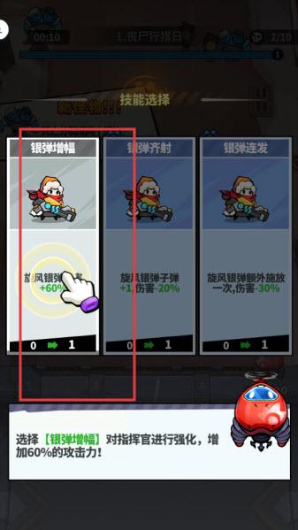 3、殺怪會獲得經驗值,滿了之后就可以升級選擇強化技能,關卡內還會隨機出現戰場補給,獲得多種升級技能。
