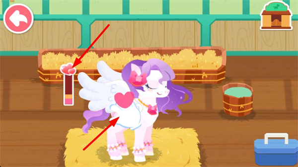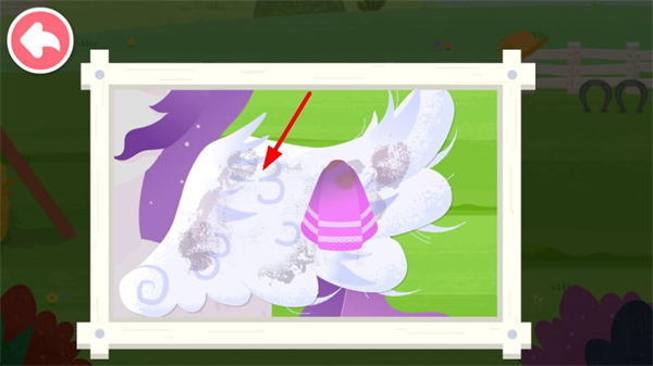 2、進入小馬翅膀的護理界面,選擇對應物品清理翅膀上的污漬,逐步去除污漬區域,讓翅膀恢復潔凈狀態。