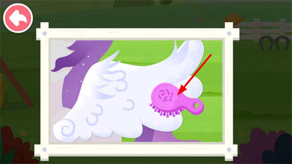 4、選擇梳理工具,對小馬的翅膀進行梳理操作,讓翅膀的外觀更整潔順滑,完成該輪的翅膀護理任務。