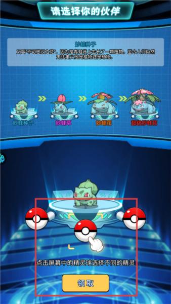 1、下載并安裝恐龍寶貝大冒險后,點擊圖標進入游戲,首次啟動時進入精靈球選擇界面,屏幕展示三種不同屬性的精靈球。
