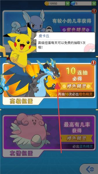 3、主界面右下角點擊扭蛋機圖標金色轉盤樣式,進入抽獎界面,每次抽獎獲得扭蛋積分,積分可在兌換商店直接兌換指定橙色精靈碎片。