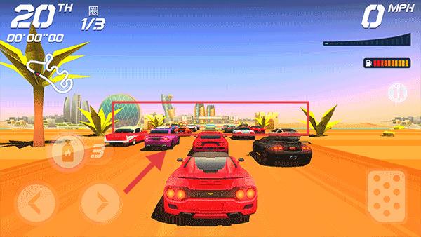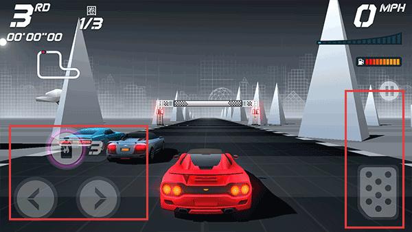 1、游戲采用四個鍵操作油門、左右變道、氮氣加速,新手需在簡單賽道中練習熟悉操作節奏。