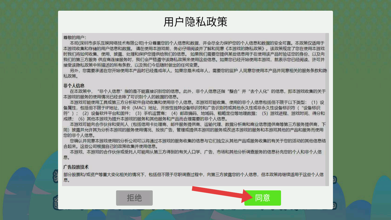 1、玩家下載游戲打開游戲頁面后,點擊同意可進入游玩,即可開始屬于你的挑戰。