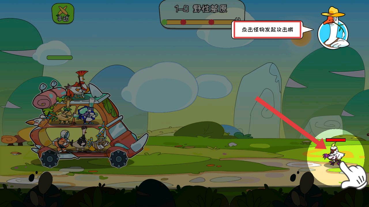 2、橫版關卡挑戰:在橫版界面中推進關卡,應對一波波進攻,利用地形優勢布置防御點,同時收集資源升級大鵝,逐步解鎖更強戰力與新技能。
