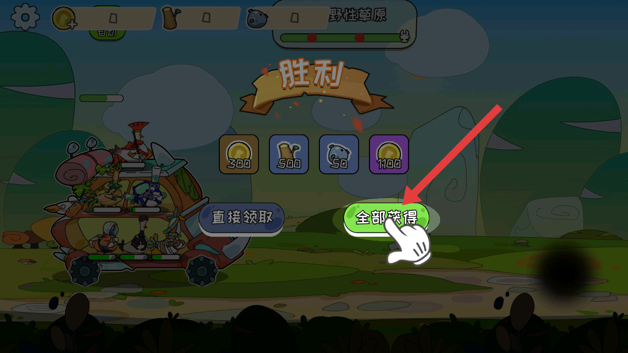 3、最后,玩家通關后點擊全部獲得即可回到游戲主界面,也可獲得豐厚獎勵。