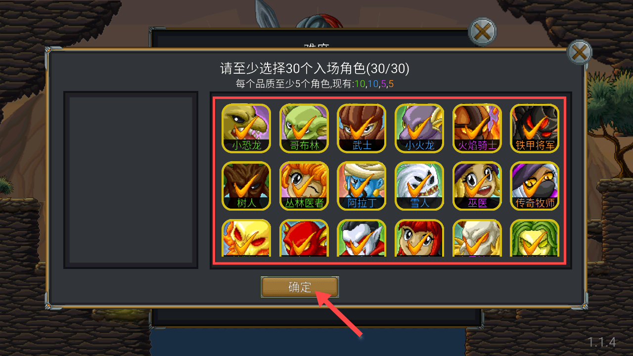 3、準備階段,玩家自行選擇方框內角色后再點擊確定即可游玩,為玩家帶來豐富挑戰。
