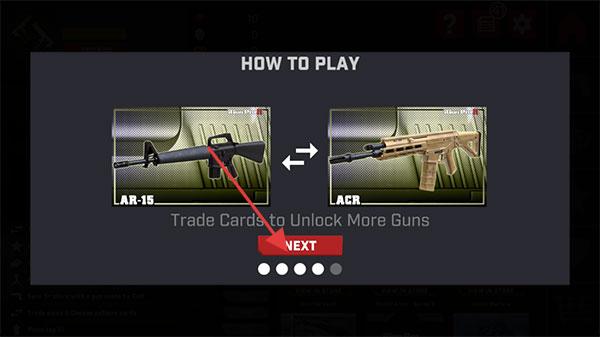 1、下載真實槍械2進入游戲開始有新手教程,使用卡片即可解鎖目標槍支,我們可以通過將多張卡片進行合成出新的卡片。