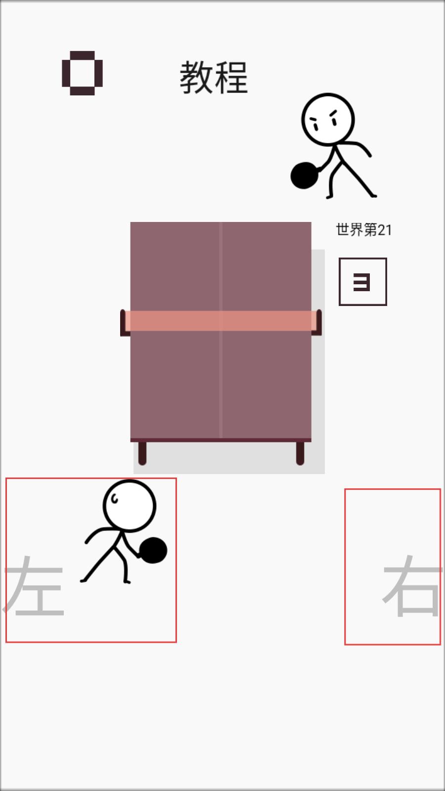 2、開始后,玩家需要通過點擊屏幕左側右側的方式進行擊打乒乓球,玩家需要幫助火柴人獲勝。