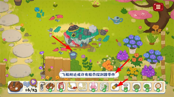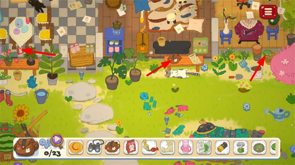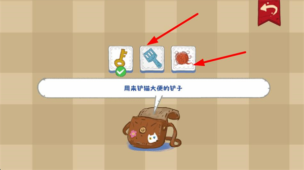 3、根據提示選擇對應的物品,比如用來鏟貓大便的鏟子,點擊該物品將其放入背包,完成該物品的收集,推進收集進度。