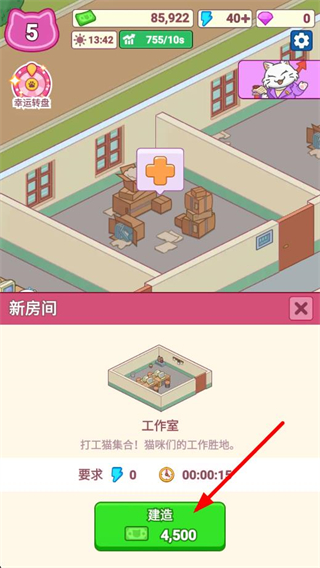 3、可建造新的工作室,花費4500即可建造,打造新的工作場地,拓展公司規模,為更多貓咪提供工作空間。
