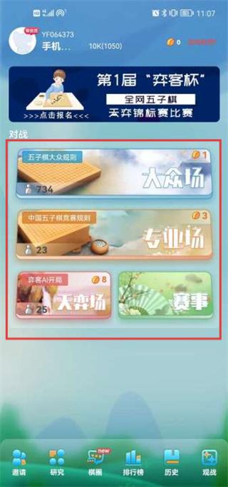1、下載并安裝完成后,首先我們點擊進入弈客五子棋,我們可以先進入大眾場。