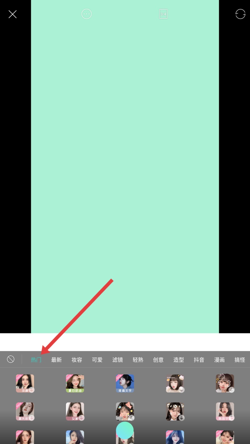 1、進入應用可看到火爆貼紙功能入口,點擊后可進入貼紙選擇界面,挑選熱門、最新等分類的貼紙,為自拍添加趣味元素。