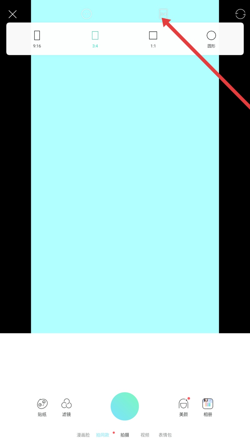 4、拍攝界面,可選擇不同比例,根據需求調整拍攝畫面比例,讓自拍呈現更合適的構圖。