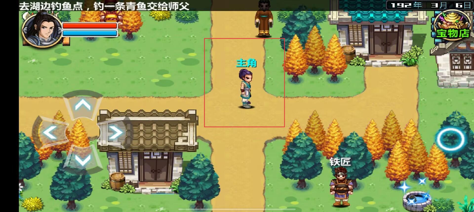 4、釣魚休閑玩法流程:滑動屏幕左側箭頭控制角色移動,在游戲地圖中搜尋釣魚點位,點擊交互按鈕后,于烏龜游動間隙把握時機拋竿,將準星對準游魚完成垂釣。