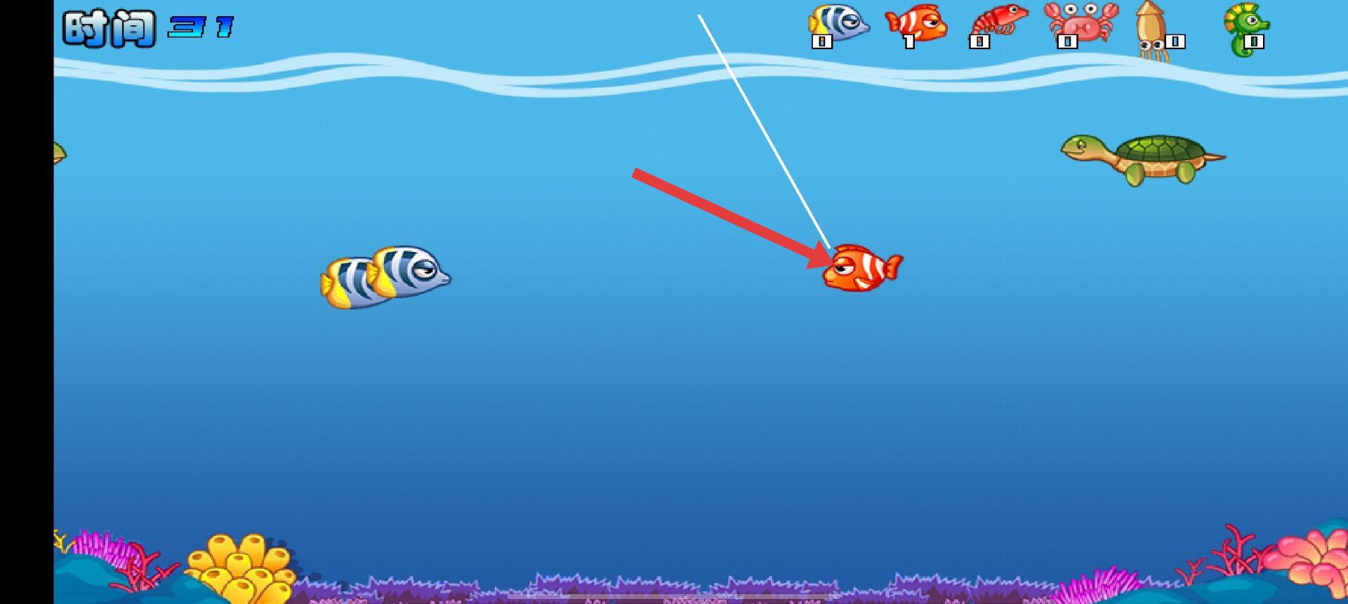 3、在烏龜游走間隙,等待魚鉤撒到最佳位置,將對勾對準魚兒即可成功釣上魚。