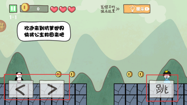 3、使用左側方向鍵操控角色移動,配合右側跳躍鍵跨越障礙,成功解救被困的公主。