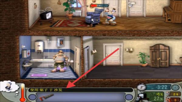 2、客廳整蠱,切換到客廳,玩家需要選中鋸子道具,點擊沙發完成整蠱,操作時注意避開鄰居視線。