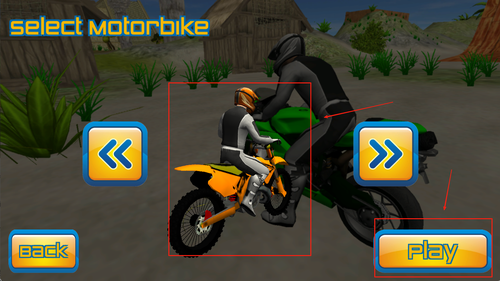 1、進入游戲后玩家將直面車庫中陳列的多款摩托車,每一款都擁有獨特的性能參數,根據性能特點挑選適合當前關卡的車型,點擊屏幕控制加速與跳躍。