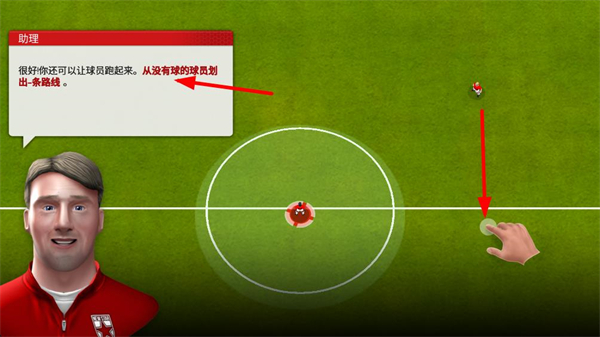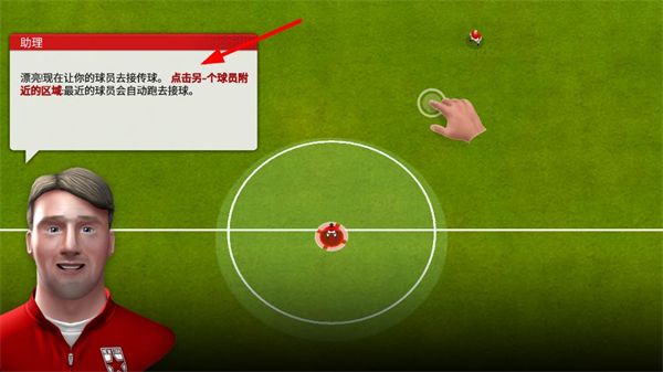 2、傳球后助理會指導接球操作,點擊另一個球員附近的區域,最近的球員會自動跑去接球,以此完成接球的流程。