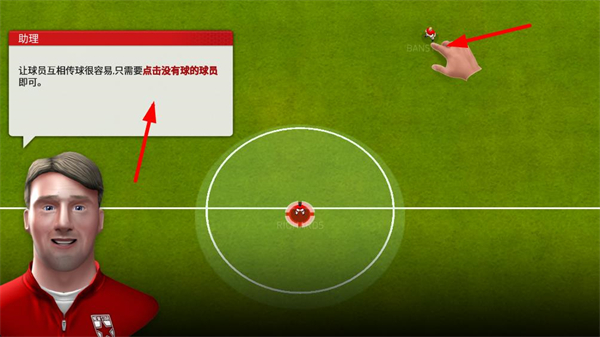 1、助理會提示傳球方法,讓球員互傳很容易,只需點擊沒有球的球員,就能完成球員之間的傳球操作。