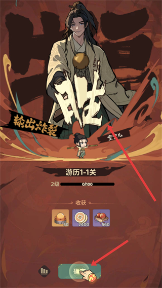 4、戰斗勝利后會顯示勝的界面,完成游歷關卡,獲取經驗、金幣等獎勵,點擊繼續按鈕,開啟下一段西游旅程。