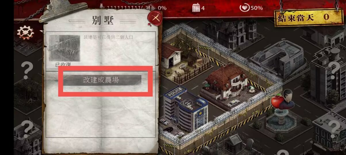 2、在別墅詳情頁,選擇改建成農場功能按鈕,觸發改建流程,跳轉至幸存者分配界面。