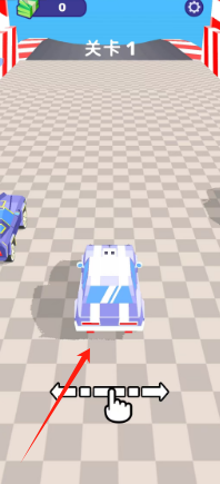 1、進入關卡1競速場景,操控底部左右箭頭控件,調整藍色賽車行進方向,準備起跑。