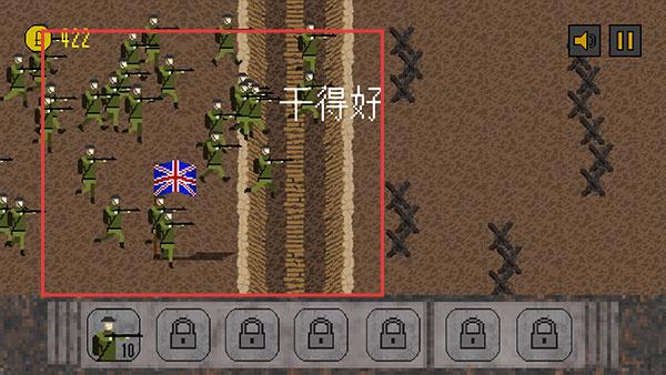 4、策略防御玩法:玩家需選擇國家在不同戰場堅守陣地,通過消滅敵人獲得金幣招募步兵突擊兵等多類士兵,適時反擊。