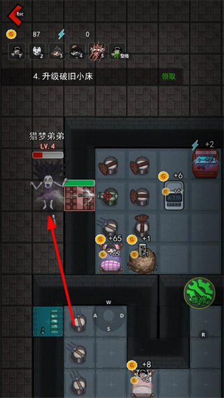 2、猛鬼會不斷升級,如獵夢弟弟升級后戰力增強,需持續升級建筑和武器,提升自身防御和攻擊能力。