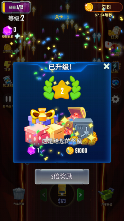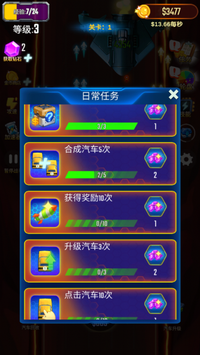 2、合成升級戰車:購買兩輛同級汽車,合并成更高級車,提升戰力應對敵人。